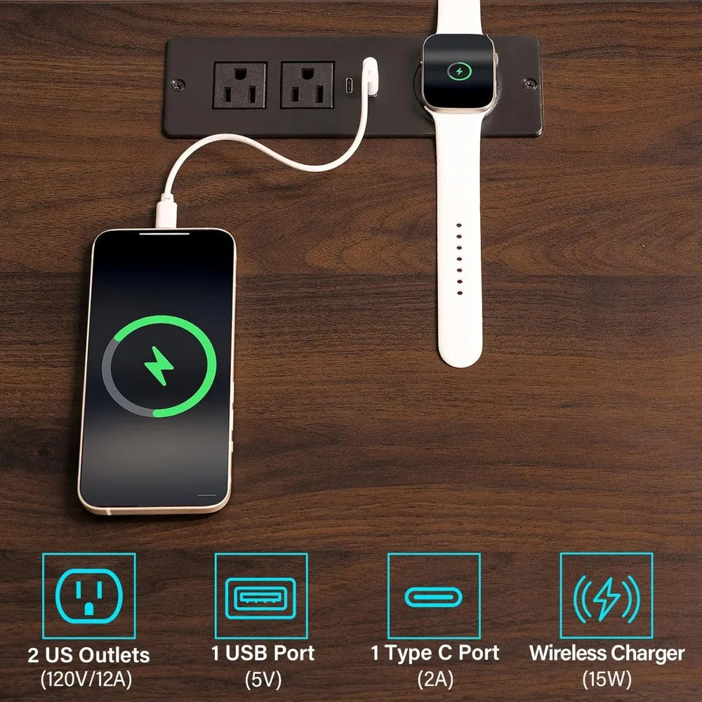 Rustic Brown Nightstand w/ Wireless Charging Station Walnut Wood 3 Drawers