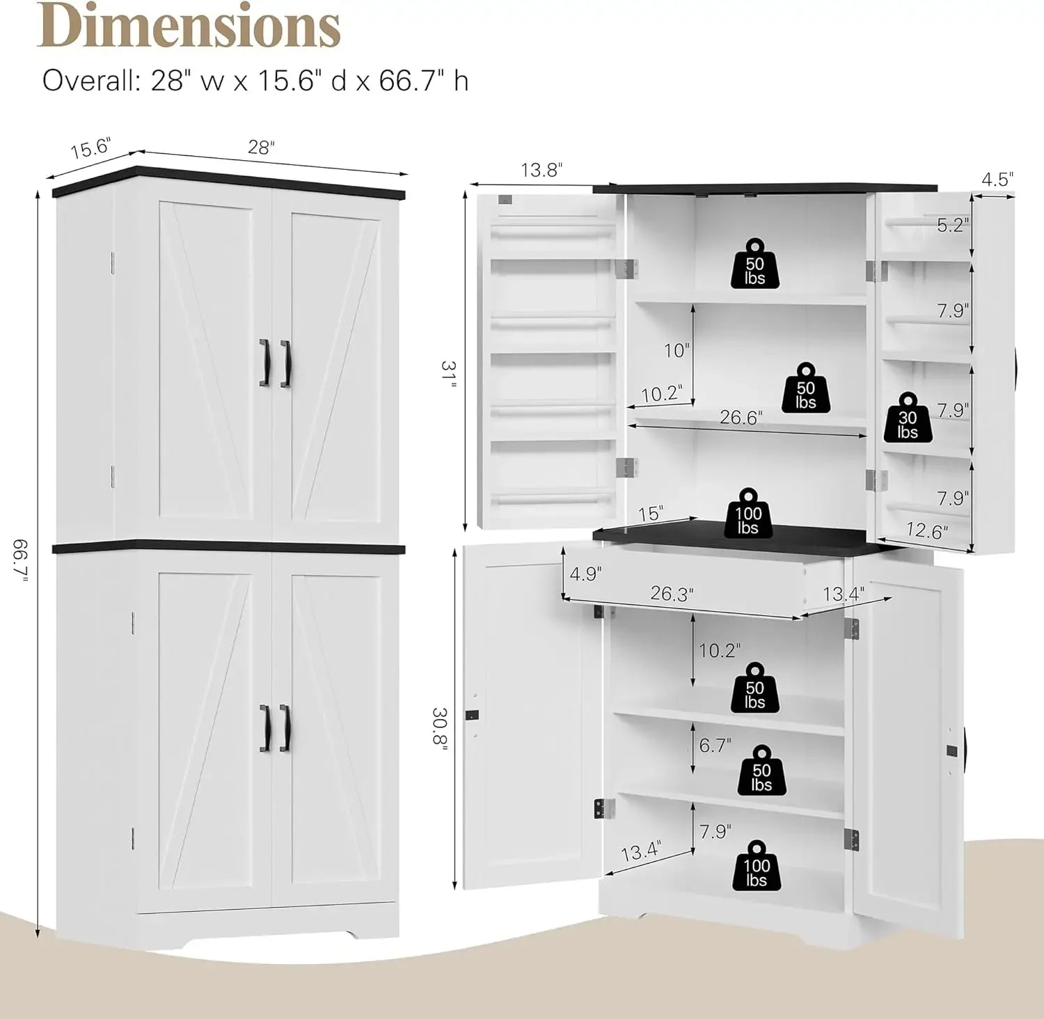 Sturdy Kitchen Pantry Storage Cabinets w/ Adjustable Shelves